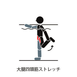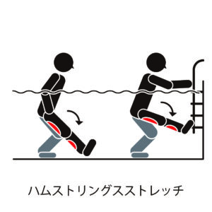 水中で行うことで陸上よりも関節の可動域が広がりやすく、より効果的に行えます。